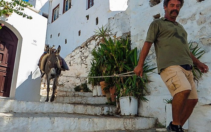 Wer das Griechenland der Postkartenmotive sucht, sollte einen Abstecher nach Lindos einplanen. Der 800-Seelen-Ort mit den weiß getünchten Häusern liegt malerisch auf einem Hang, oberhalb die alte Festung, unterhalb eine kitschig-türkise Bucht. Zwischen den engen Gassen unterhalten sich lautstark Einheimische, alte Frauen sitzen vor dem Haus oder spritzen mit einem Schlauch die Hitze des Tages von ihrer Terrasse. Es gibt wunderschöne Läden zum Flanieren und tolle Lokale.